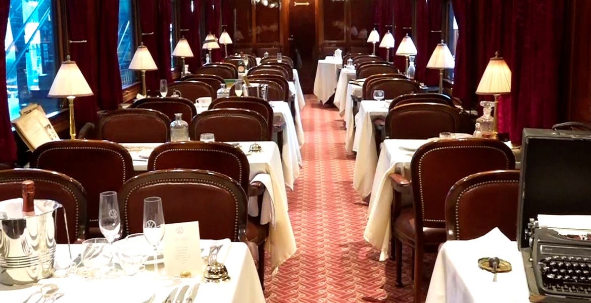 El primero de ellos, un vagón bar, recrea en las mesas de su interior las actividades más comunes que tenían lugar hace casi 100 años entre la diversidad de pasajeros del Orient Express: una máquina de escribir, cartas de póker, dibujos infantiles, una revista de belleza, tabaco de pipa o una guía turística sobre la antigua Constantinopla.