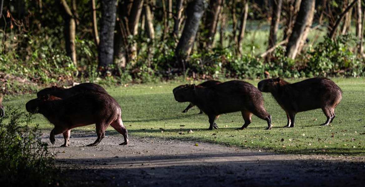 Además de los caimanes que nadan en el lago principal y disfrutan de sus costas, los golfistas a menudo se topan con búhos, pájaros carpinteros, mariposas, monos y capibaras, el roedor más grande del mundo.
