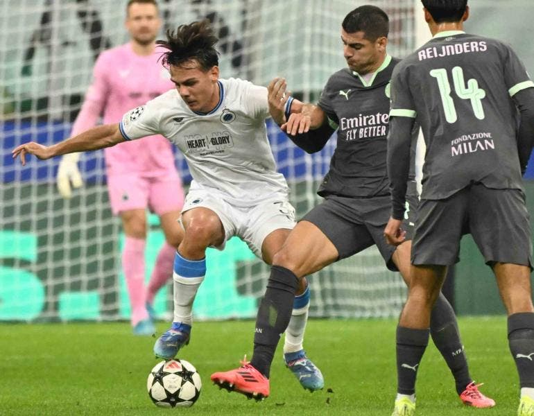 Sufrió los ataques constantes de un Brujas desatado en San Siro, que obligaron a Mike Maignan a salvar los muebles. Primero con un golpeo de Tzolis en el minuto 2. Después fue Jutglá con un disparo que se marchó ligeramente alto en el minuto 3. Otra de Tzolis desde el perfil zurdo del ataque que hizo estirarse a Maignan en el palo largo. Y, la más clara, un zapatazo de Ordóñez que se estrelló en el larguero. Todo en 10 minutos de infarto.