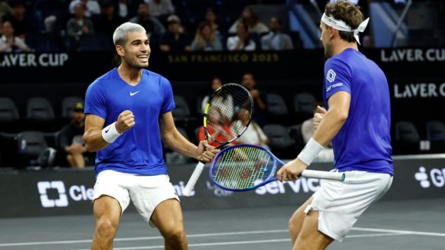 Ciudad de México.- El equipo europeo volvió a meterse en la pelea por la Copa Laver 2025 gracias al triunfo en dobles de Carlos Alcaraz y Casper Ruud, quienes derrotaron por 7-6(4), 6-1 a los estadounidenses Reilly Opelka y Alex Michelsen este domingo en San Francisco.