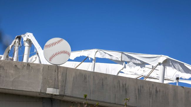 🟥 #MiltonFlorida | El paso del huracán Milton ha dejado severos daños en Florida, uno de ellos fue en el Tropicana Field de los Tampa Bay Rays, los fuertes vientos destruyeron el techo del estadio.