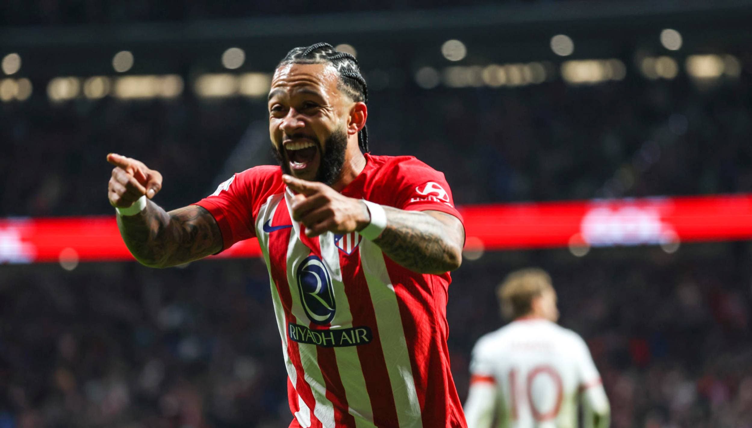 Memphis remató a la red dentro del área un pase de Correa, tras una internada de Llorente por la banda derecha.