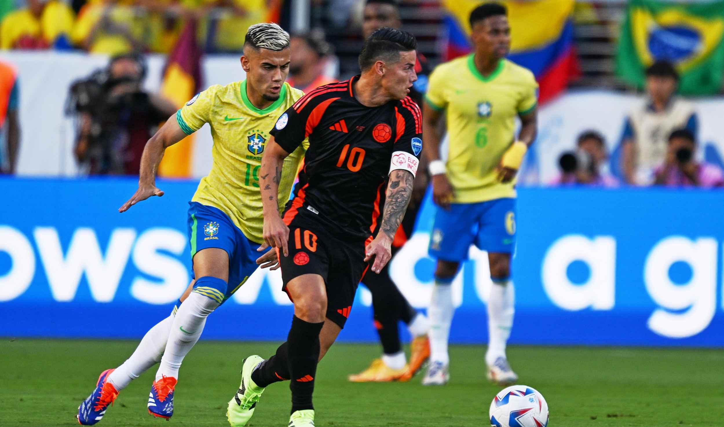 Y Colombia insistía. Otra vez James casi sorprende a Alisson en otra falta desde la banda. Brasil se olvidó de mirar al arco rival. Vinícius, desdibujado, bloqueado e inofensivo.