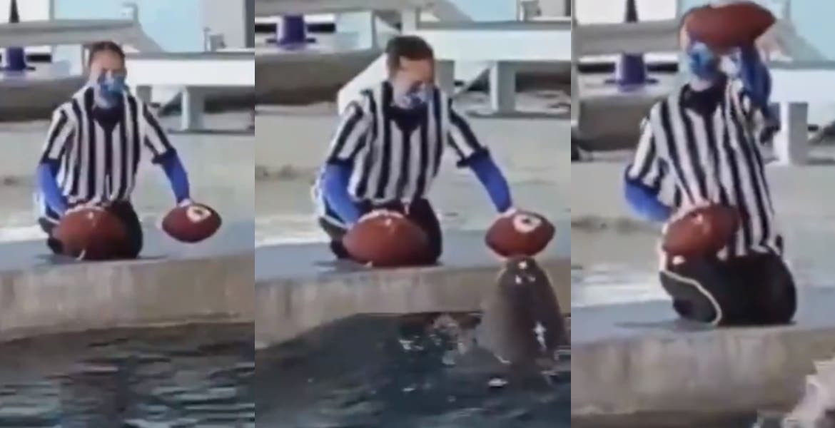 En un vídeo divulgado por esta institución se ve a Nicholas en un tanque de agua nadar hacia dos pelotas que flotan junto a una de las paredes, recoger con la nariz la que corresponde a los Chiefs y empujarla hasta el lado opuesto, hasta entregársela a una de sus cuidadoras.