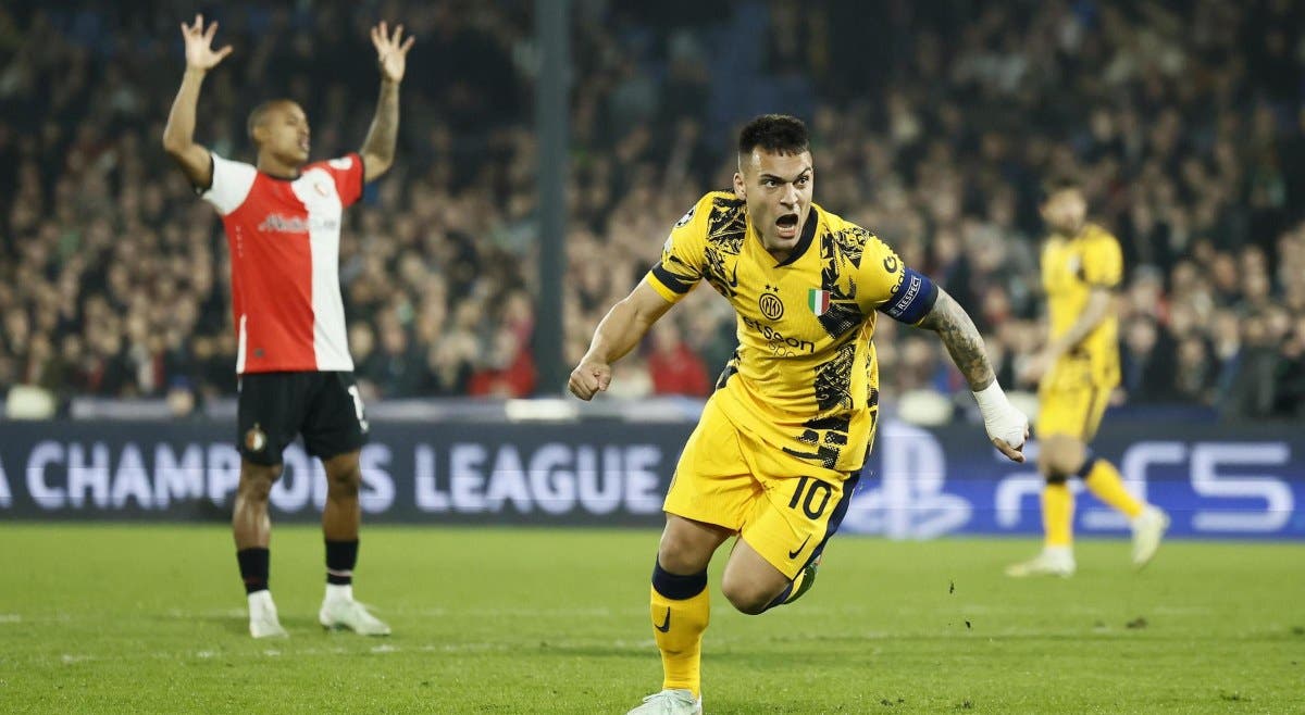 El argentino Lautaro Martínez encarriló este miércoles el pase del Inter de Milán a los cuartos de final de la Liga de Campeones con un golazo ante el Feyenoord (0-2), en una victoria a domicilio que abrió el francés Marcus Thuram y que pudo ser mayor si el polaco Piotr Zielinski hubiera acertado desde los once metros.