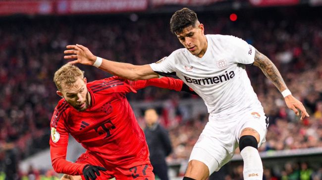 Luego llegó una fase en la que el Bayern pareció olvidar que tenía un hombre menos y puso la pelota en la mitad del Leverkusen. No obstante, en su primera posesión larga en la segunda parte el Leverkusen se adelantó en el marcador con un remate de cabeza de Nathal Tella a centro de Alejandro Grimaldo desde la izquierda.