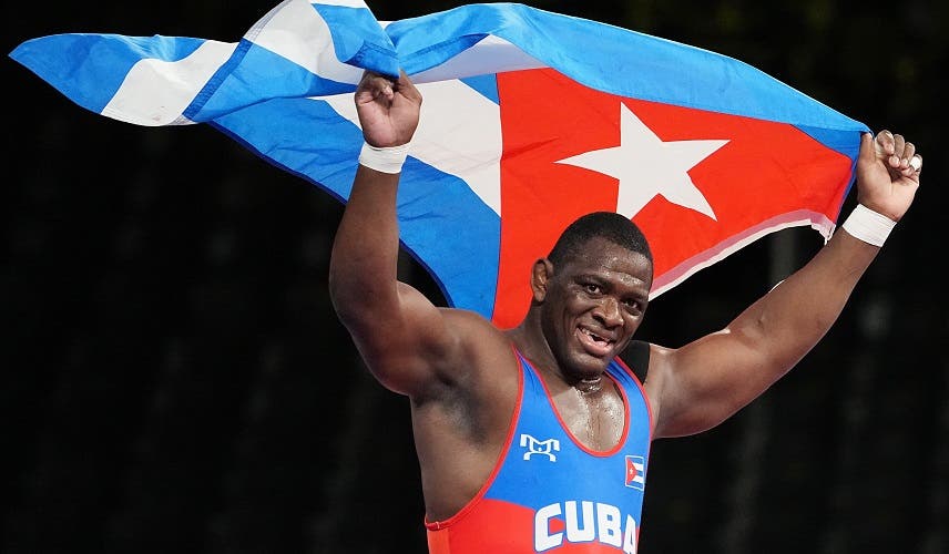Tras conocerse vencedor, el luchador de 38 años levantó en volandas a su entrenador y luego, entre lágrimas, enarboló una bandera de Cuba.