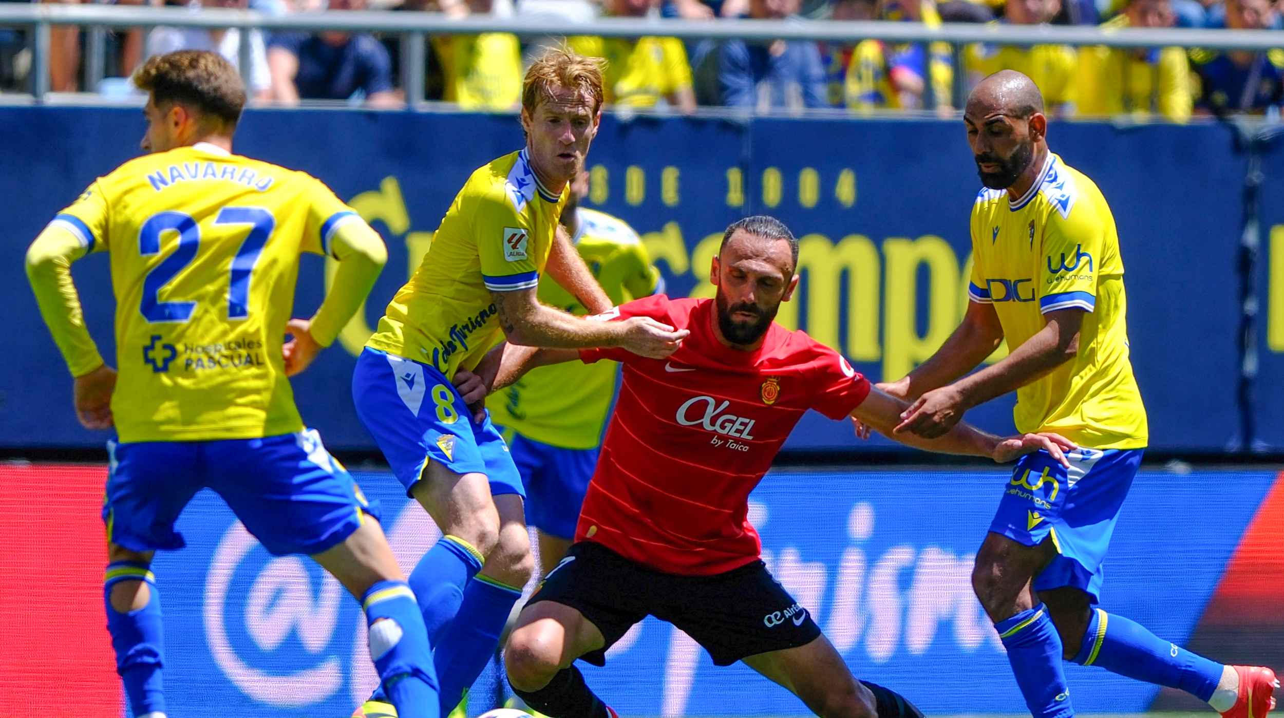 Precisamente, al filo de la primera hora de juego, este último jugador envió un buen centro desde la derecha buscando la cabeza de Chris Ramos, aunque, al final, fue el mallorquinista Omar Mascarell el que remató con la testa hacia su portería para que el Cádiz igualara la contienda (m.59).