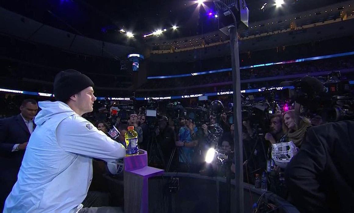 La fiesta del Super Bowl ha iniciado oficialmente con el Opening Night, donde el jugador más buscado fue el quarterback, Tom Brady, quien elogió a las Águilas de Filadelfia y descartó que su equipo sea favorito para ganar el Vince Lombardi.