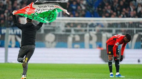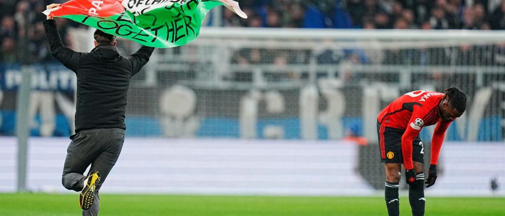 El partido de Liga de Campeones de este miércoles entre el Copenhague y el Manchester United fue interrumpido brevemente al inicio de la primera parte tras saltar al campo un individuo portando una bandera palestina.