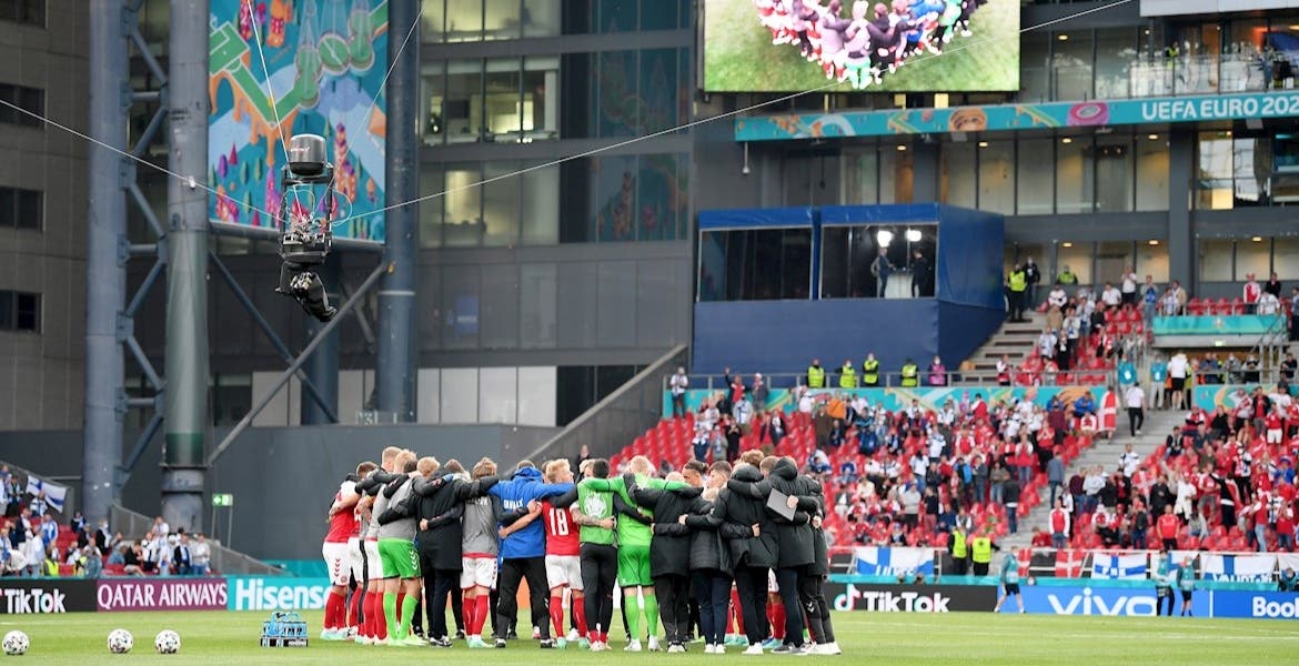 El otro partido que se jugó después, por deseo de los jugadores al conocer que Eriksen estaba bien, fue precedido de gestos de ánimo y un corro de equipo y técnicos daneses en el medio del campo.