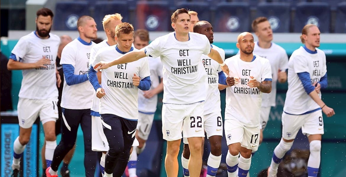 Finlandia desea en sus camisetas una pronta recuperación a Eriksen