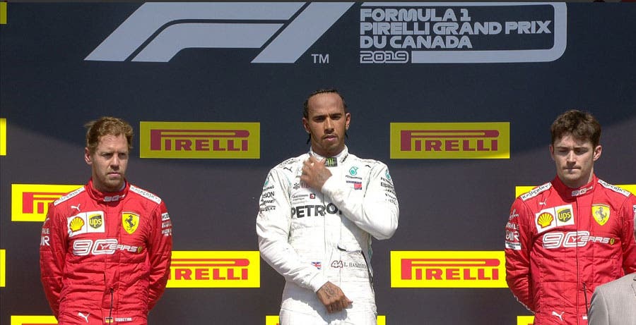 MONTREAL.- El británico Lewis Hamilton conquista el GP de Canadá gracias a una penalización de cinco segundos al alemán Sebastian Vettel, quien cruzó la meta en primer lugar, pero fue relegado al segundo por una sanción que provocó que terminará molesto. El podio lo completó el monegasco Charles Leclerc, con lo que los Ferrari escoltaron al monarca de Mercedes.