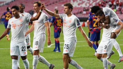 En la primera parte el Bayern fue una apisonadora para el Barcelona y en el minuto 31 ya vencía por un contundente 1-4 (Müller por partida doble, Perisic y Gnabry) a causa de su implacable efectividad ante la portería rival, de una defensa azulgrana endeble y de las constantes pérdidas de los de Quique Setién en la salida del balón.
