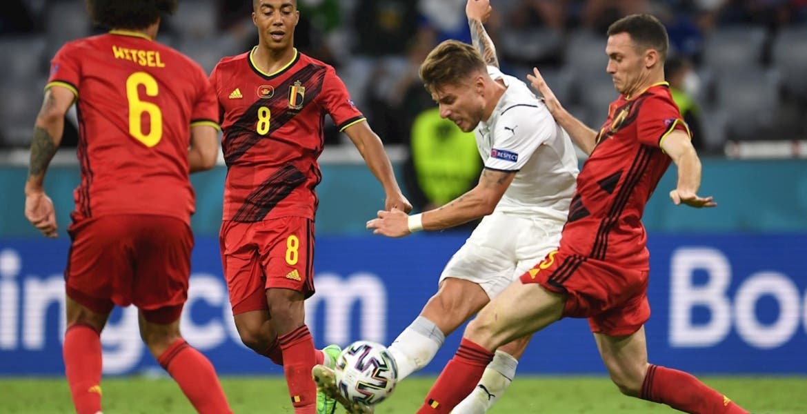 Un gol de Nicolo Barella a los 31 minutos, 18 después de que fuera anulado un tanto por fuera de juego de Leonardo Bonucci; y otro de Lorenzo Insigne en el 44 plasmaron la superioridad de Italia en el primer tiempo, aunque en el tiempo añadido del primer acto Romelu Lukaku alivió la situación de Bélgica desde el punto de penalti y situó el 1-2.