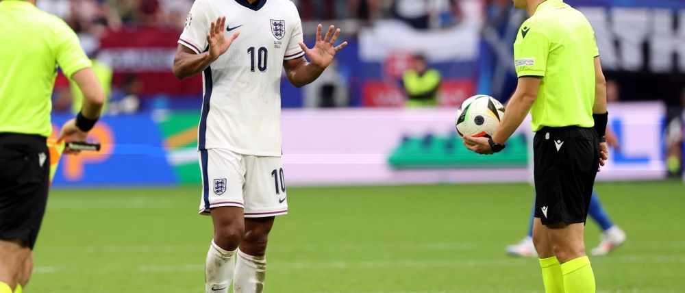 Después de conseguir el gol del empate al minuto 95’, que mandó el partido a los tiempos extras, el jugador inglés gesticuló de forma despectiva a la altura del banquillo eslovaco.