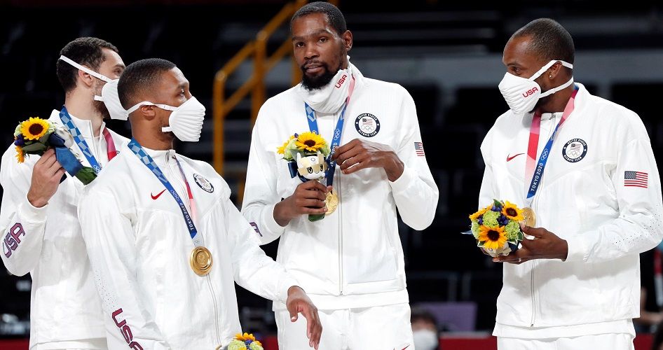 Durant, que logró en Tokio su tercer oro olímpico, fue el líder de la selección que se proclamó campeona anotando 29 puntos y capturando 6 rebotes en la final (82-87). De los medallistas de plata fue seleccionado el pívot Rudy Gobert, que promedió 16.2 puntos y 9.4 rebotes por encuentro.