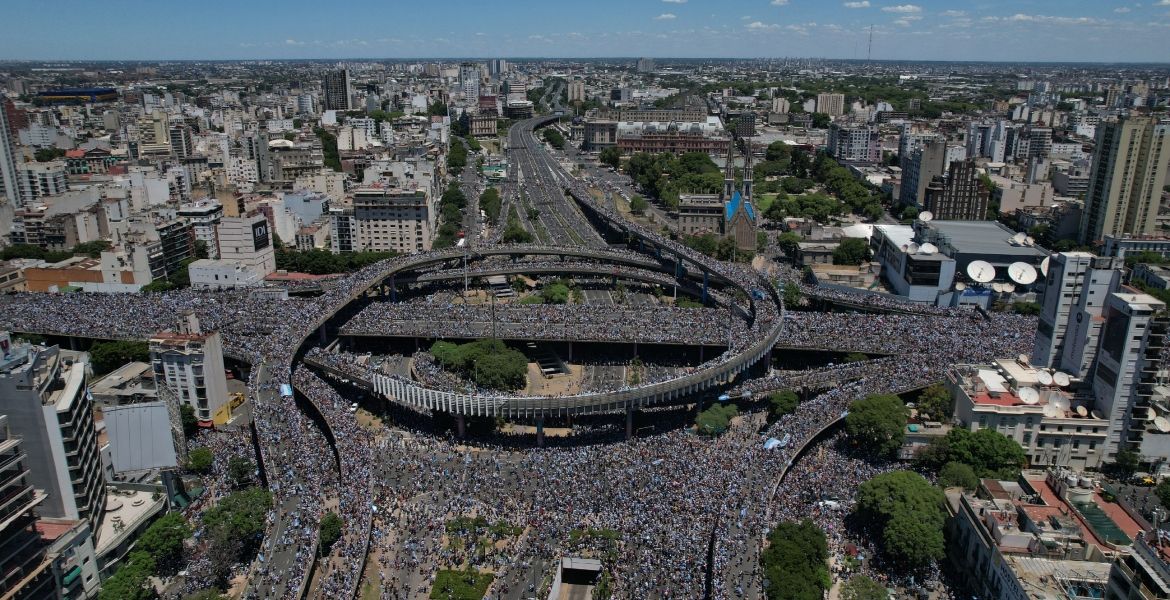 "No nos dejan llegar a saludar a toda la gente que estaba en el Obelisco, los mismos organismos de seguridad que nos escoltaban no nos permiten avanzar. Mil disculpas en nombre de todos los jugadores campeones. Una pena", aseguró en su cuenta de Twitter el presidente de la Asociación del Fútbol Argentino (AFA), Claudio "Chiqui" Tapia.