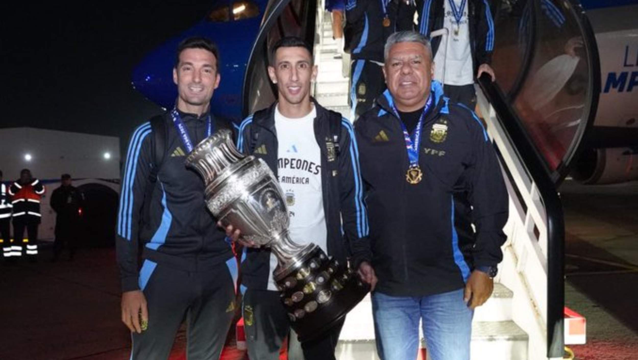 Casi 24 horas después de haber conquistado en Estados Unidos la decimosexta Copa América para Argentina, parte del plantel albiceleste que derrotó en la final por 1-0 a Colombia llegó a Buenos Aires, donde miles de personas concentradas alrededor del aeropuerto esperaban a sus ídolos.