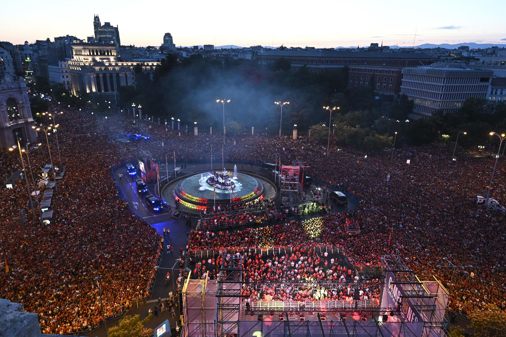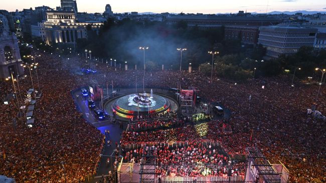 Madrid, 15 jul (EFE).- Miles de personas han recibido a la selección española de fútbol a su llegada al Palacio de Comunicaciones, sede del Ayuntamiento de Madrid, situada en la Plaza de Cibeles y punto final de las celebraciones por la conquista de la Eurocopa 2024 que se han desarrollado en la capital de España a lo largo de este lunes.