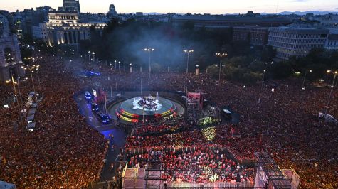El autobús descapotado, que previamente había recorrido Moncloa, la calle Alberto Aguilera, la glorieta de San Bernardo, la Plaza de Colón o la Puerta de Alcalá entre la alegría de multitud de seguidores; ha llegado a las 14:00 horas, tiempo del centro de México, al ayuntamiento capitalino, donde le esperaba el alcalde José Luis Martínez-Almeida. Allí tendrá lugar un fin de fiesta en el que no debería faltar la música y las palabras de los flamantes campeones continentales.