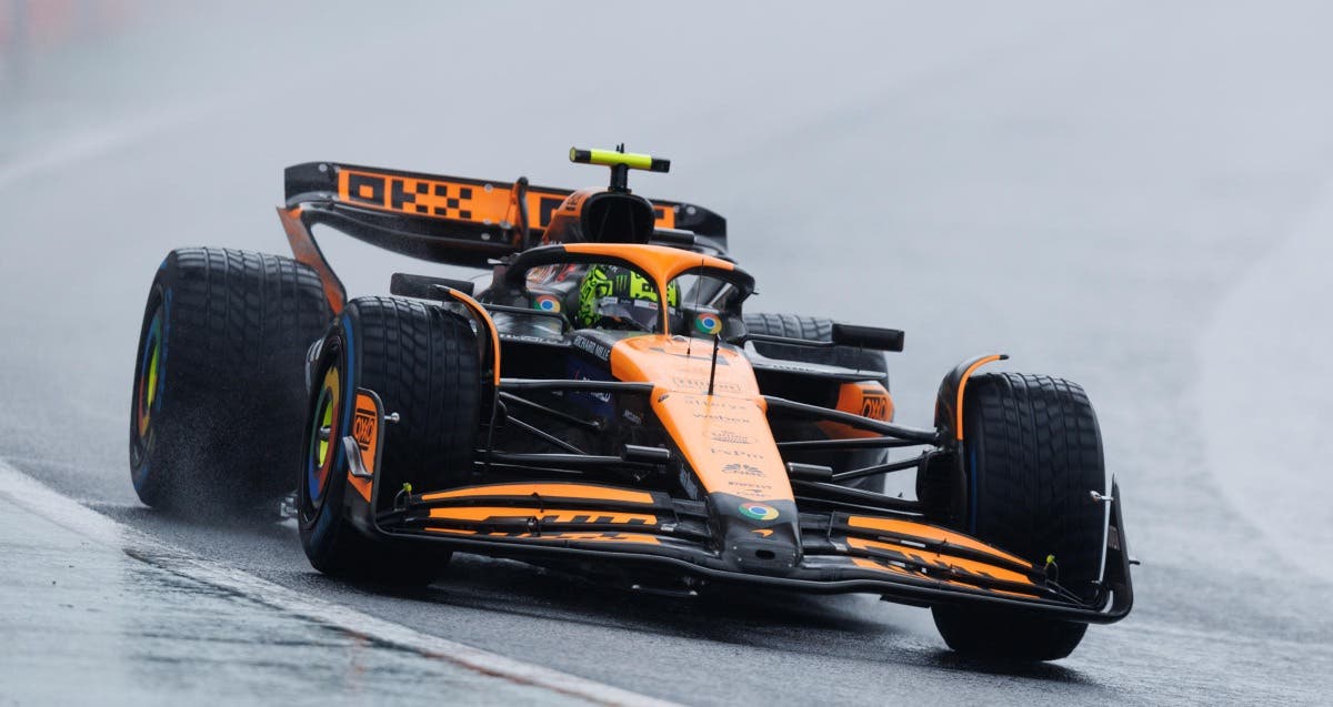 Norris, de 24 años, firmo su octava 'pole' en la F1, al dominar la tercera y decisiva ronda (Q3) de la muy accidentada cronometrada principal, en la que cubrió, con neumático intermedio, los 4.308 metros de la pista brasileña -donde a primera hora de la mañana se recuperó la calificación que tuvo que ser aplazada debido a la fuerte lluvia el sábado por la tarde- en un minuto, 23 segundos y 405 milésimas, 173 menos que su compatriota George Russell (Mercedes), que arrancará junto a él desde la primera fila; y con siete décimas sobre el japonés Yuki Tsunoda (RB), que sale tercero.