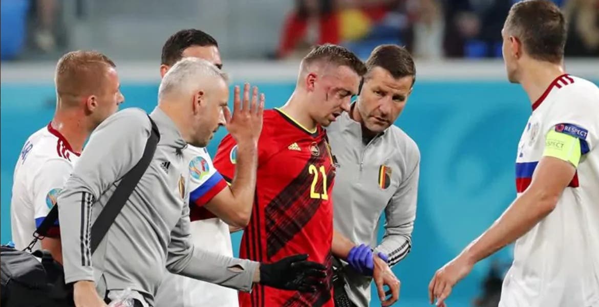 Castagne, de 25 años y jugador del Leicester City, se golpeó violentamente la cara con Daler Kuzyaev en el minuto 27 del duelo entre Rusia y Bélgica, en el que los diablos rojos se impusieron a los rusos por 3-0.