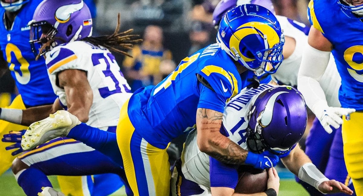 Vikings respondió con un gol de campo en le inicio del segundo cuarto que los acercó 10-3, reacción que apagó la defensiva de Los Angeles. Ahkello Witherspoon golpeó a Sam Darnold, provocó un balón suelto que recuperó Jared Verse, quien lo llevó hasta la anotación para alejarse 17-3.