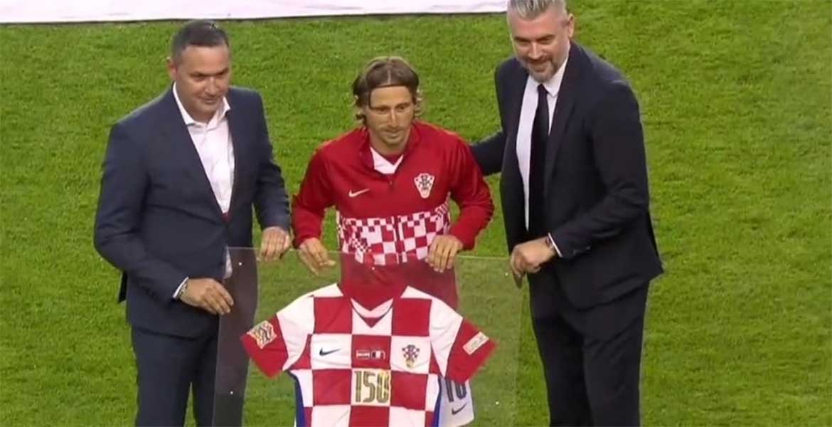 Redacción deportes.- Luka Modric, jugador del Real Madrid, fue homenajeado este lunes antes del encuentro que disputa contra Francia por cumplir 150 partidos internacionales con la selección de Croacia.
