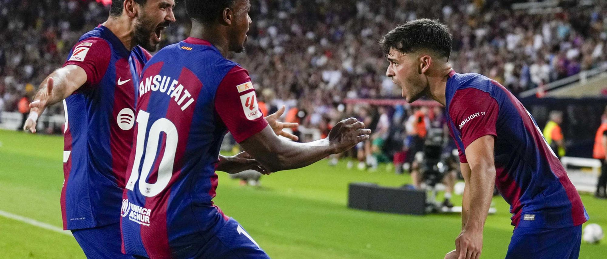 Xavi Hernández, en la grada al estar sancionado por su expulsión en Getafe, solventó la baja por lesión de Araujo retrasando la posición de Frenkie de Jong para formar pareja con Christensen en el eje de la zaga y desplazando a Koundé al lateral derecho. Y apostó por el joven Lamine Yamal para reemplazar al sancionado Raphinha en el extremo derecho.