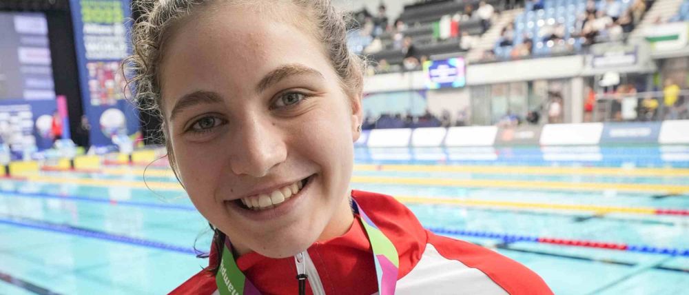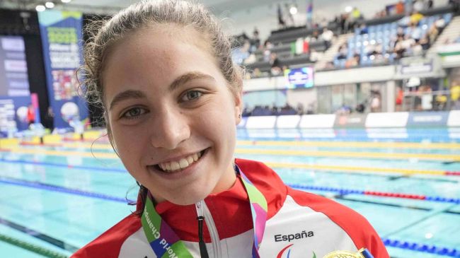La nadadora almeriense, con discapacidad en un brazo, se estrenó internacionalmente en el Mundial celebrado en Madeira (Portugal) en 2022, cuando apenas tenía trece años. Regresó a casa con una colección de oro (en los 100 metros braza), plata (relevo 4x100 estilos mixto) y bronce (200 estilos).