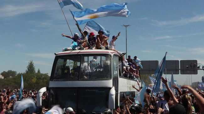 Alrededor de 4 millones de hinchas vitorearon a los jugadores de la Selección de Argentina en Buenos Aires, en un recorrido que los futbolistas tuvieron que acabar en helicoptero. https://t.co/VihH0Bvkk3 pic.twitter.com/7qen3BrHO5