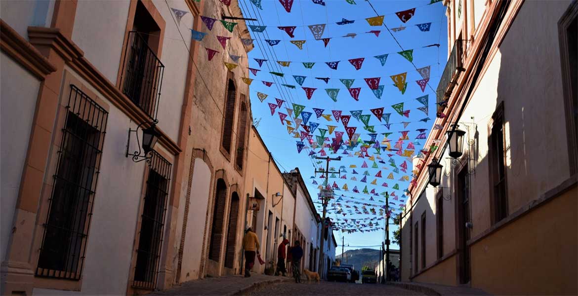 En carretera la cual bombardea la mirada con cactus infestos de tunas rojas, colorean el paisaje densamente empolvado cual bandera de México. Arribamos junto con cinco personas más, descendimos en el centro, cuando al pisar el suelo nos atacaron probablemente tres guías de turistas para vendernos paquetes majestuosos de actividades y recorridos en las mejores haciendas mineras y los campos de lavanda del cual, sin duda, se sostiene turísticamente el destino.