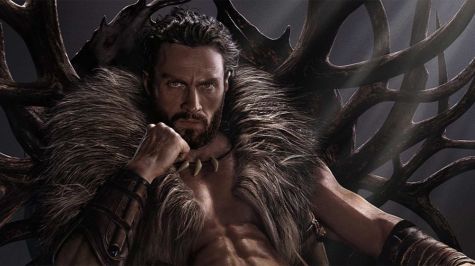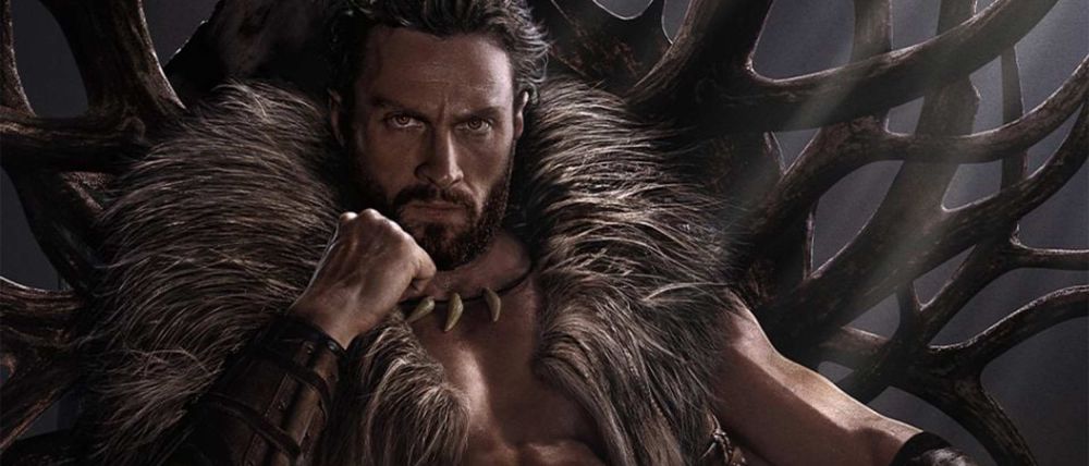 De hecho, el póster oficial de la película muestra a Kraven sentado sobre un trono, con calaveras al lado, y utilizando ese característico chaleco, así como un collar compuesto por colmillos.
