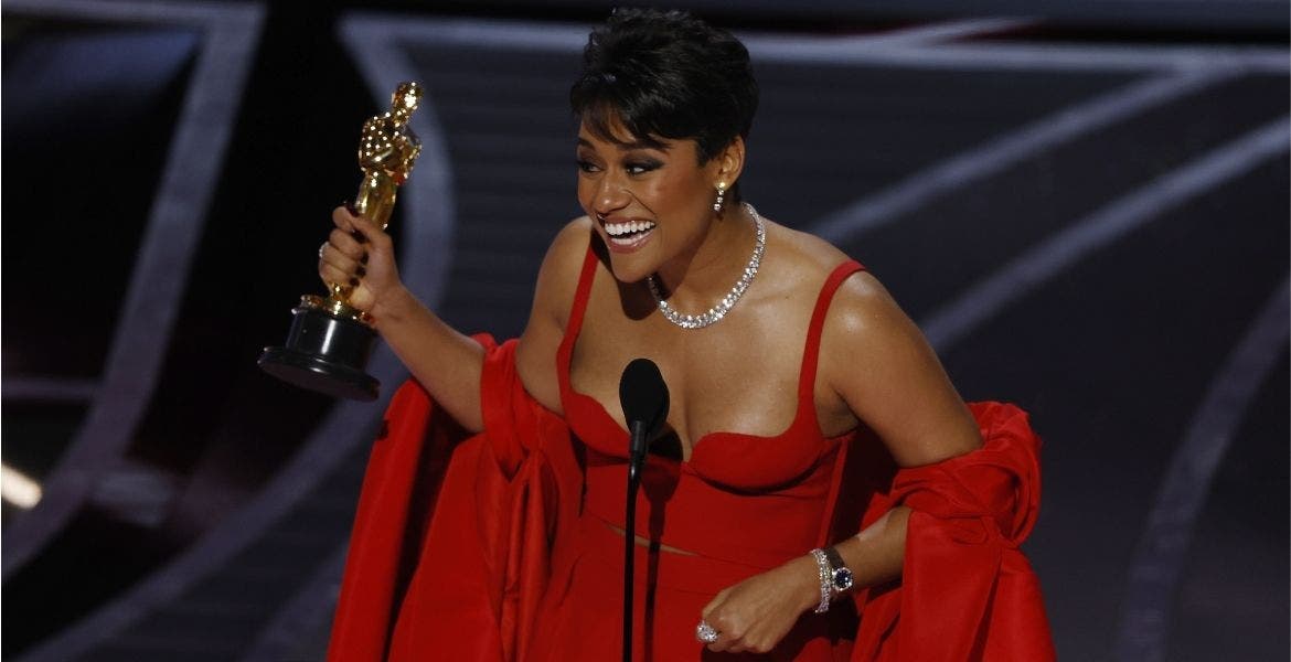 Enfundada en un espectacular vestido rojo, la actriz se definió como "afrolatina", resaltó la importancia de la cuestión identitaria y prometió que no olvidará esto cada vez que vea la estatuilla.