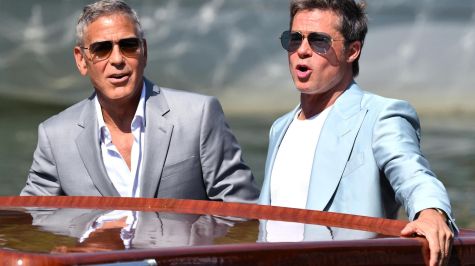 Finalmente, ambos saludaron a los cámaras y reporteros, sentándose con ellos, y después posaron en la foto de familia de la película que han estrenado fuera de concurso en la Mostra, la comedia de acción 'Wolfs', junto a sus compañeros de reparto Amy Ryan y Austin Abrams, que habían quedado más rezagados.