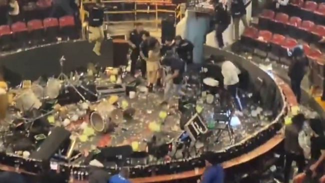 🚨 #INCREÍBLE | Por negarse a cantar ‘narcocorridos’, fans destrozan escenario y abuchean al sonorense Luis R. Conríquez en concierto en #Texcoco.
