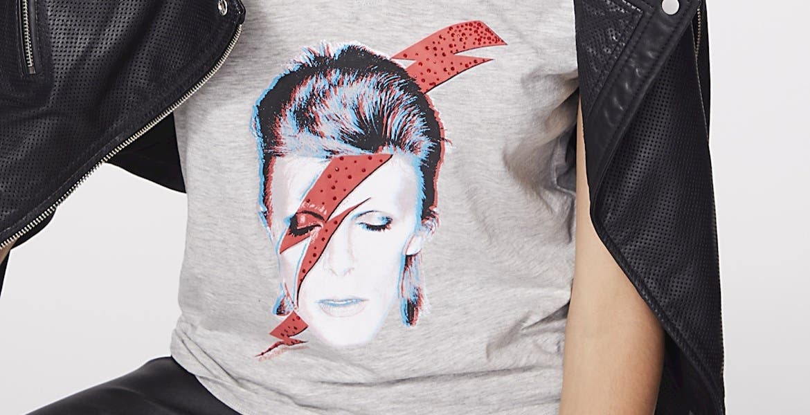 La compañía francesa Ikks, que el año pasado compró el fondo LBO France, ha sacado una colección de camisetas de mujer con la que pretende transportar a los seguidores del cantante británico a los años ochenta y a Let's Dance!.