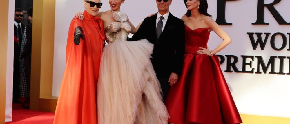 Meryl Streep, a sus 76 años, volvió a proyectar la autoridad de la temible Miranda Priestly con un impecable vestido-capa en color naranja. Combinado con largos guantes negros y sus características gafas de sol, Streep demostró que su presencia sigue siendo imponente. A su lado, Anne Hathaway, de 43 años, deslumbró con un vibrante vestido rojo de satén. El diseño, que contaba con un corpiño lencero y una falda voluminosa, marcó el contraste perfecto con la sofisticación de su mentora en la ficción.