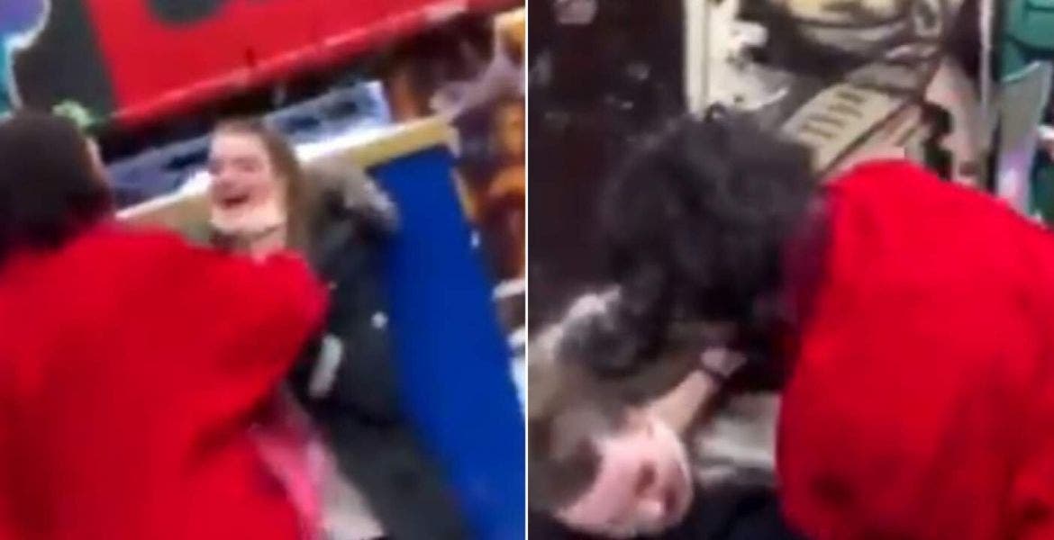 "Oh, ¿quieres pelea?, ¿quieres pelea?”, comenta Miller a la admiradora en un video, mientras la toma del cuello y la arroja al piso, en tanto personas a su alrededor cuestionan esa actitud.