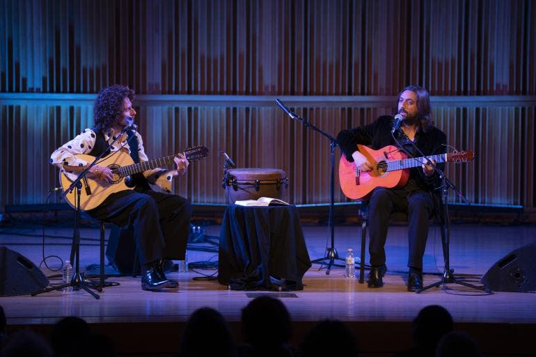 Los tres músicos alternaron bulerías, tientos y tangos, pero con el espíritu libre que caracterizaba a Enrique Morente, los palos 'volaban' libremente mientras que los músicos cambiaban de instrumento mientras entraban y salían del escenario.