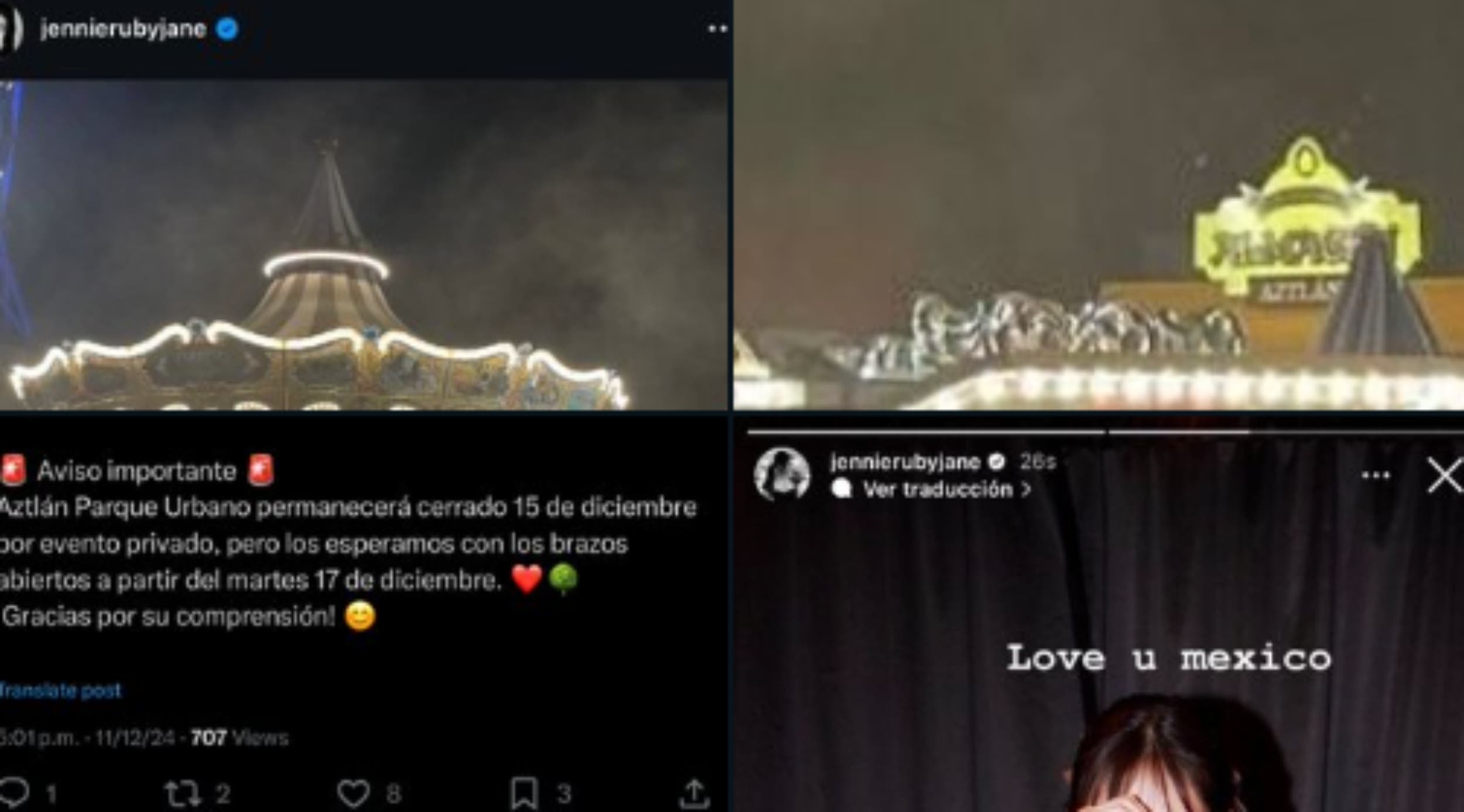 La emoción de los seguidores de Jennie comenzó con una imagen compartida por la artista en la que aparece en un carrusel. Inicialmente, muchos no reconocieron el lugar, pero con el paso de las horas, los fans comenzaron a identificar el Parque Aztlán como el escenario de la fotografía. Este parque, que anteriormente era conocido como la Feria de Chapultepec, se convirtió en un lugar aún más misterioso cuando, poco después de la publicación de Jennie, la cuenta oficial del parque en redes sociales compartió la misma imagen, confirmando que algo especial se estaba preparando allí.