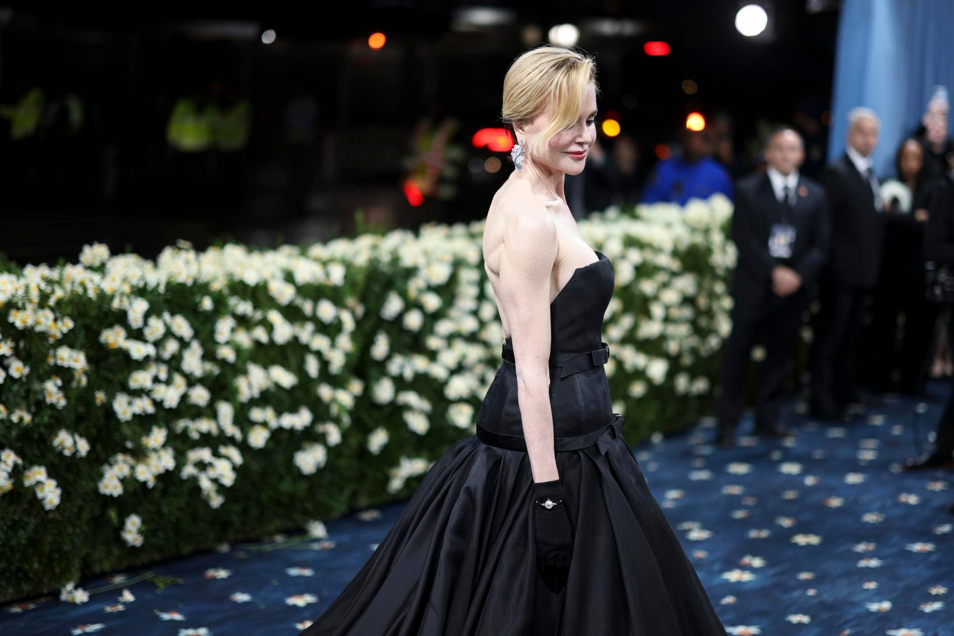 Muchos de los invitados subieron la escalinata hacia el museo, donde se celebra la fiesta, deteniéndose solo a ser fotografiados y saludando al pasar a los periodistas apostados a cada lado de la alfombra roja -que en realidad era azul con flores- durante horas, y que reclamaban alguna declaración.