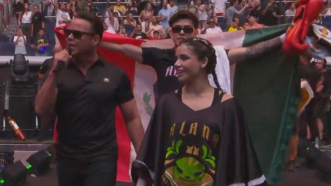 "El Sol de México" acompañó a la streamer mexicana Alana Flores, quien formaba equipo con Amablitz, interpretando su clásico tema "La Bikina" mientras se dirigían al ring para enfrentarse a Nissaxter y Zeling.