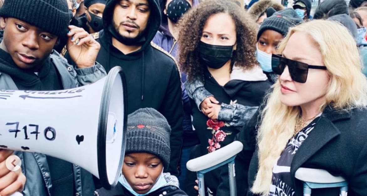 Madonna asiste a protestas de '#BlackLivesMatter' con muletas