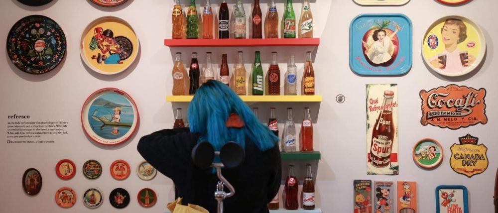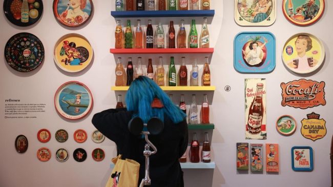 Entre las piezas se incluyen lavadoras, carteles, murciélagos disecados, cartas de amor, paletas de colores inspiradas en pollos o botellas de refresco de más de 60 años. La colección comenzó en 1968, cuando Bruno Newman, fundador del museo, adquirió un pequeño perfume en el mercado de la Lagunilla: “Algunas partes de la exposición destacan objetos mexicanos, como refrescos y empaques de cigarros. Fue un proceso de más de un año que incluyó seis meses de diseño y montaje”, agregó Christian.