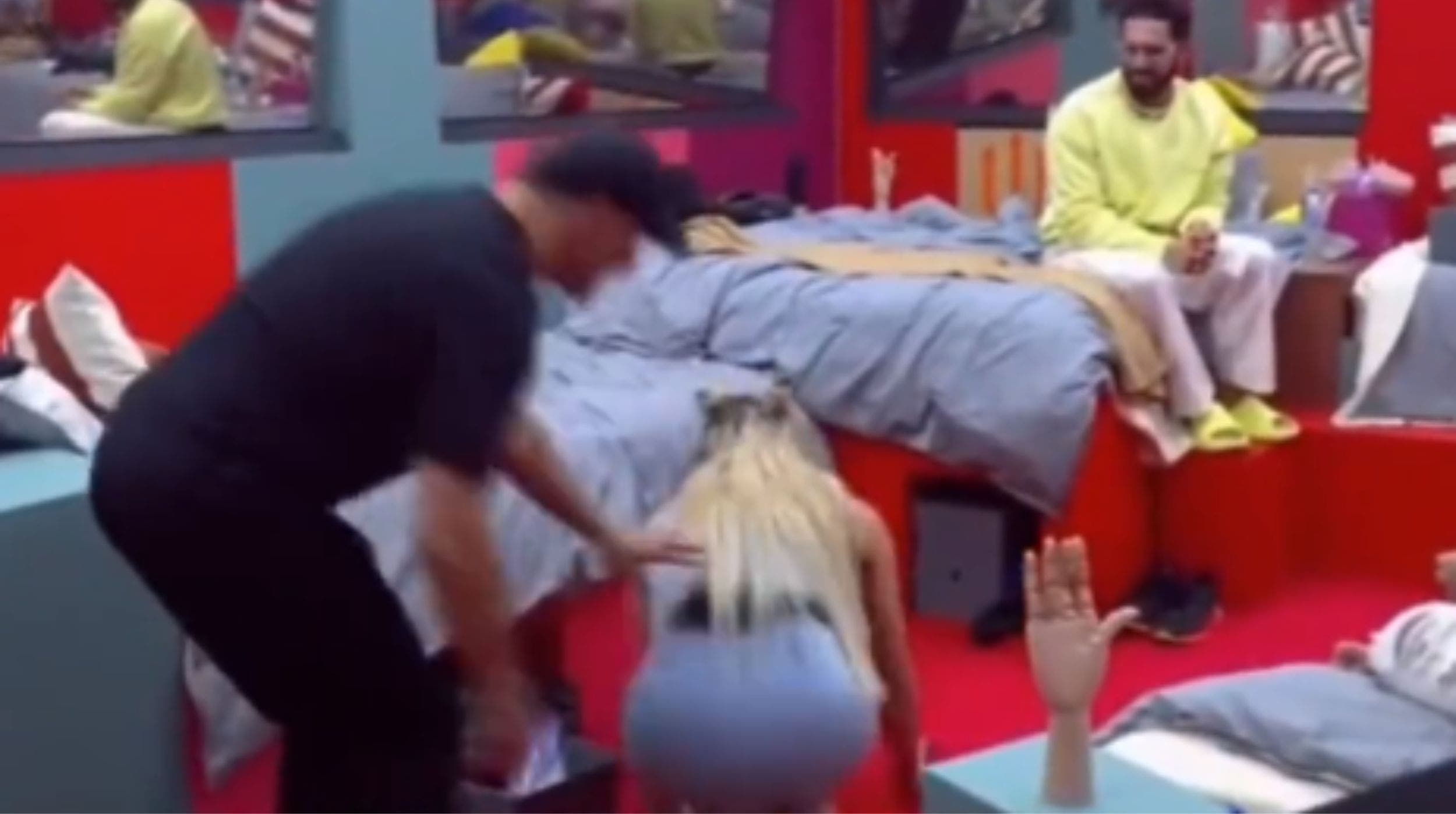 Todo ocurrió cuando Wendy Guevara limpiaba el suelo de la habitación, por lo que se encontraba agachada levantando la basura con un rodillo y un recogedor, cuando Sergio Mayer se acercó y le dio una nalgada.