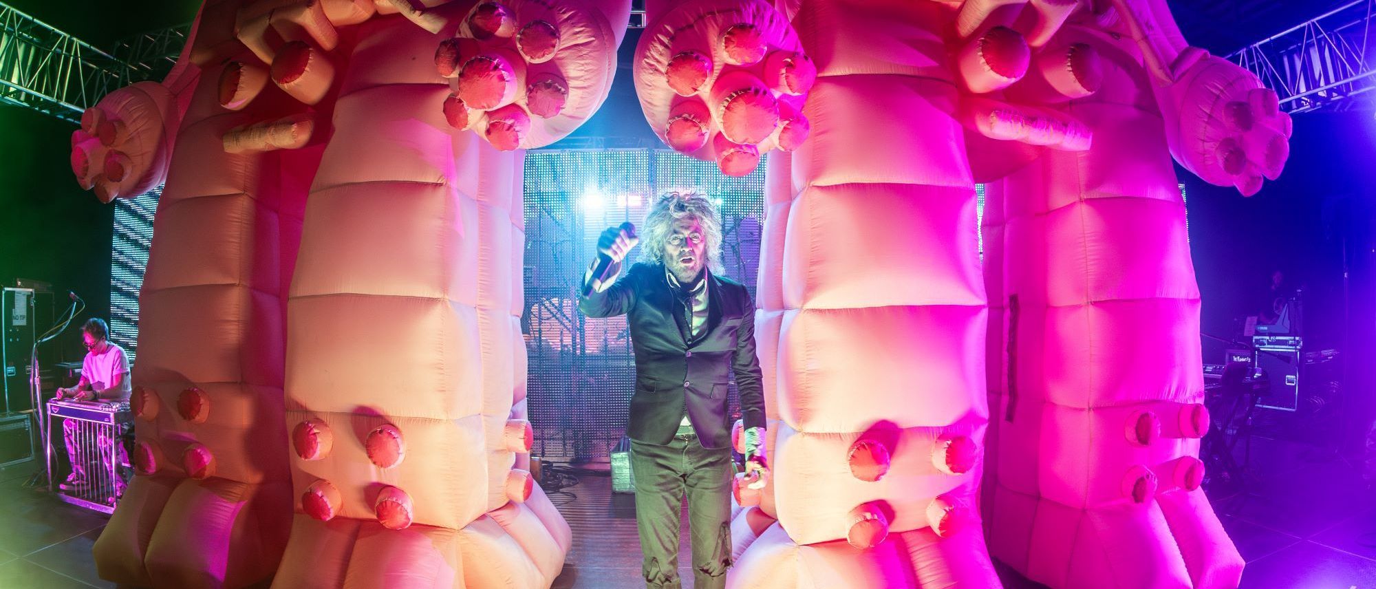 Por Arantza Acevedo.- Ayer por la noche, la banda estadounidense The Flaming Lips se presentó en el Pabellón Oeste en Ciudad de México, luego de un cambio de recinto, pues originalmente iban a presentarse en el Velódromo Olímpico. Aun con el cambio de sede, la expectativa por ver uno de los actos más completos de la escena musical actual no disminuyó y los fans poco a poco llegaron al Pabellón, incluso horas antes de que la presentación de The Flaming Lips comenzara.