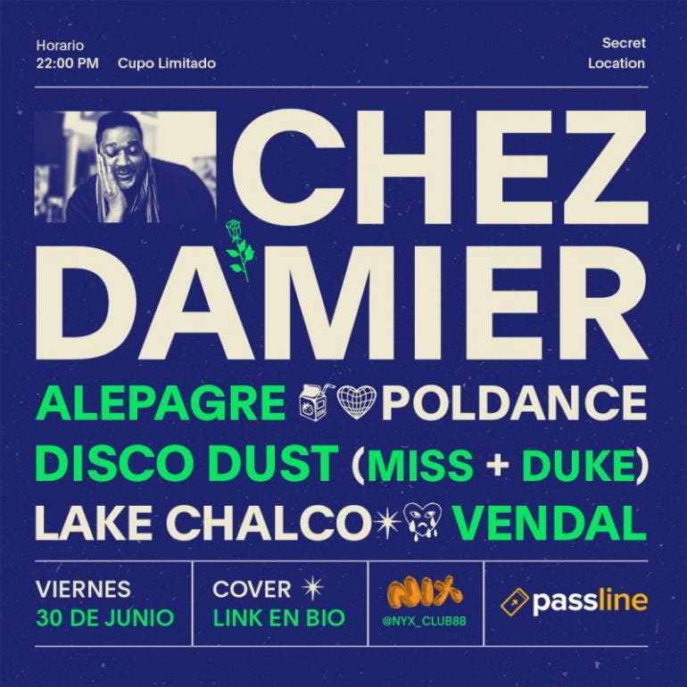 ¡No pierdas la oportunidad de ser parte de esta noche mágica de house con Chez Damier y los talentosos artistas que lo acompañarán! Compra tus boletos ahora y prepárate para disfrutar de una fiesta única en Nix Club.