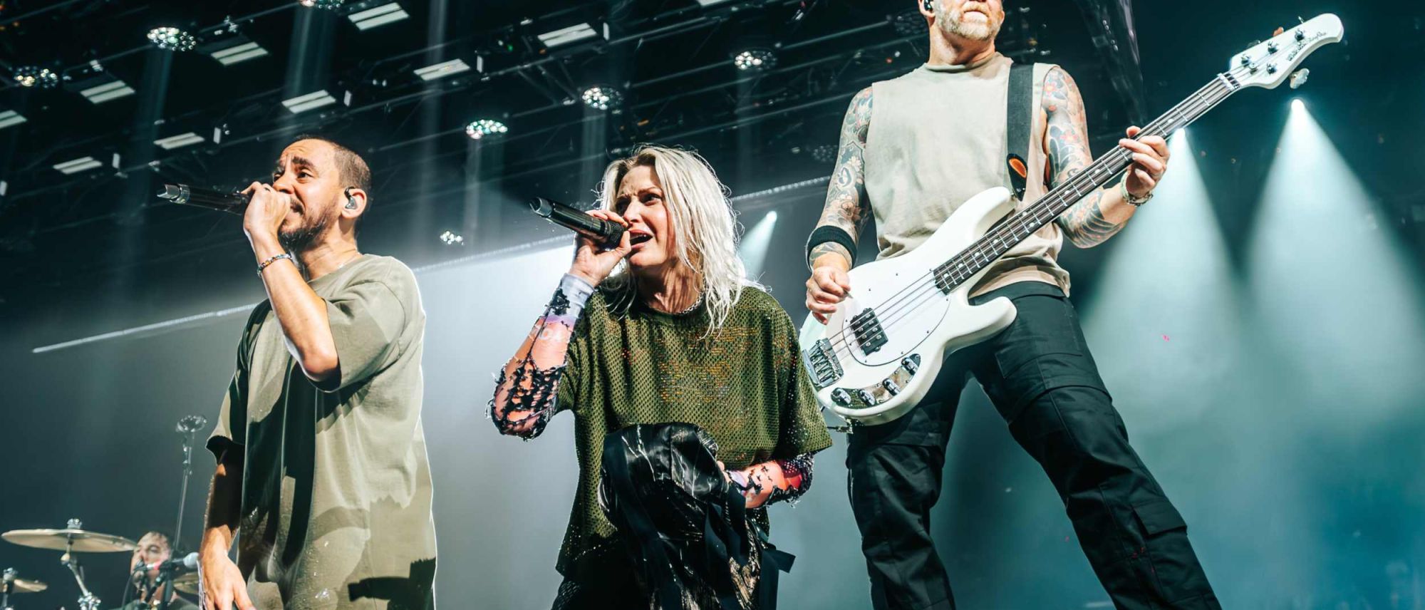 El O2 de Londres abarrotado se entregó al retorno de Mike Shidona, Brad Delson, Phoenix y la presencia Armstrong, su nueva vocalista, en el resurgir de Linkin Park ante el público que les vio por última vez vibrar.